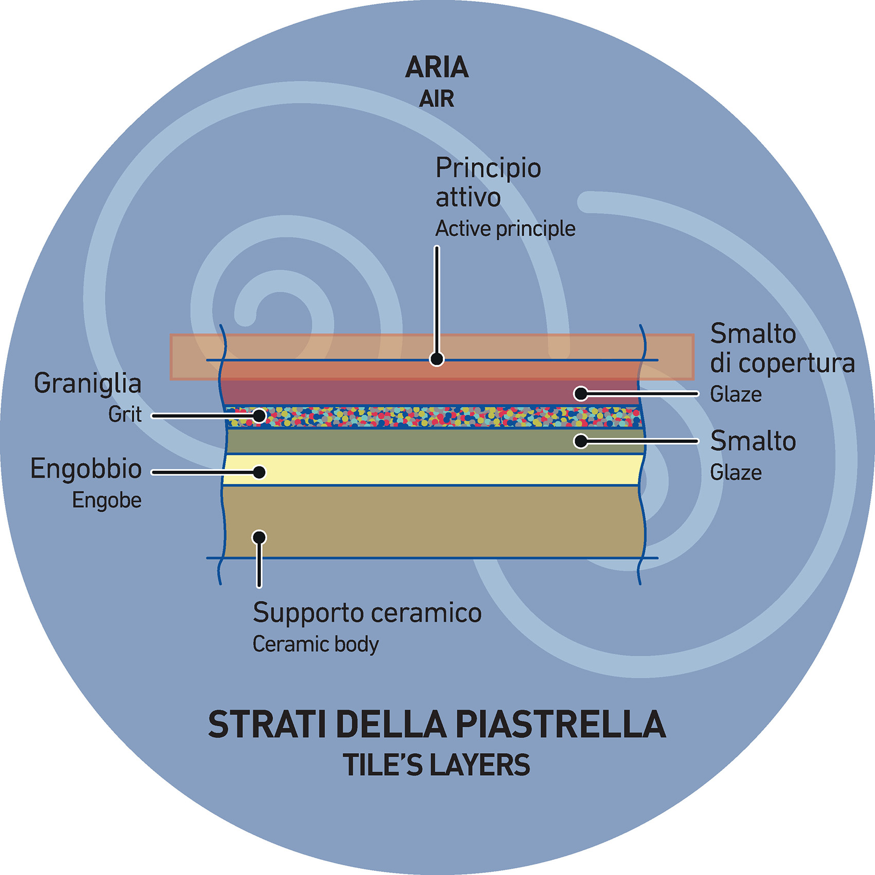 They are able to produce on the tile's surface an incompatibility between ink and glaze, limiting the "repellency" phenomena in specific and previously defined areas of the surface.