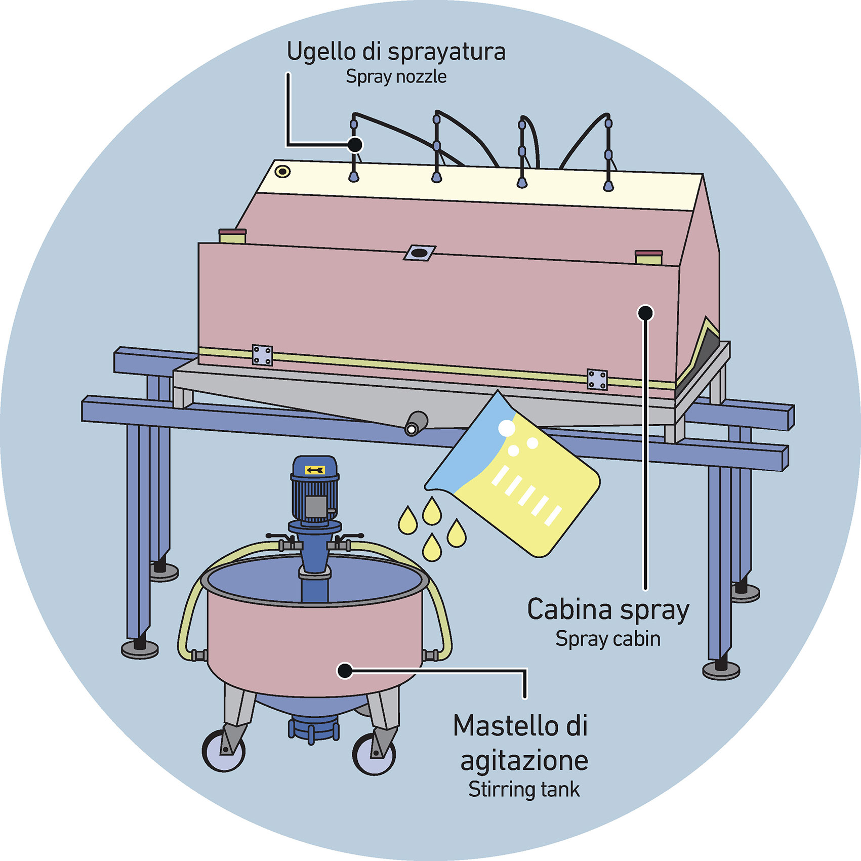 The suspension before being applied by means of spray system technology usually rests inside the tanks for a period that can range depending on the situation and where is constantly under stirring so to avoid possible sedimentation phenomena.