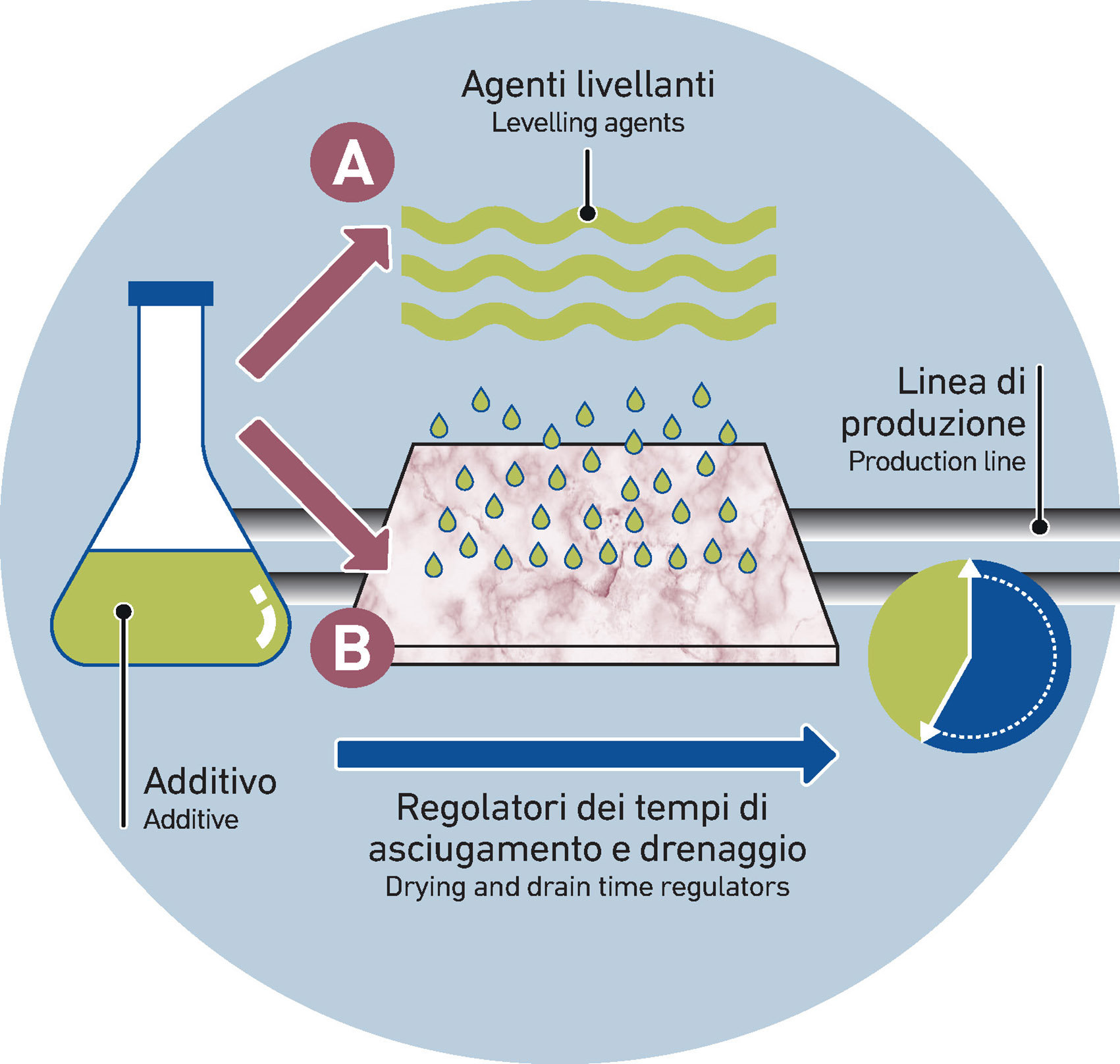 For this reason, the most significant and smart action is to add the glaze with a proper leveling agent or more generally with chemicals able to adjust and standardize the drying and drainage times, ensuring a good cohesion between the layers.