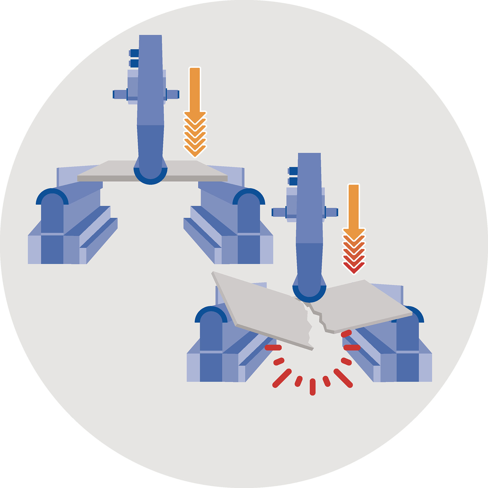 This is a specific precision tool that is able to define the breaking force and the flexural strength of the ceramic support by applying a force that gradually increases in the middle of the sample under examination, until it breaks.