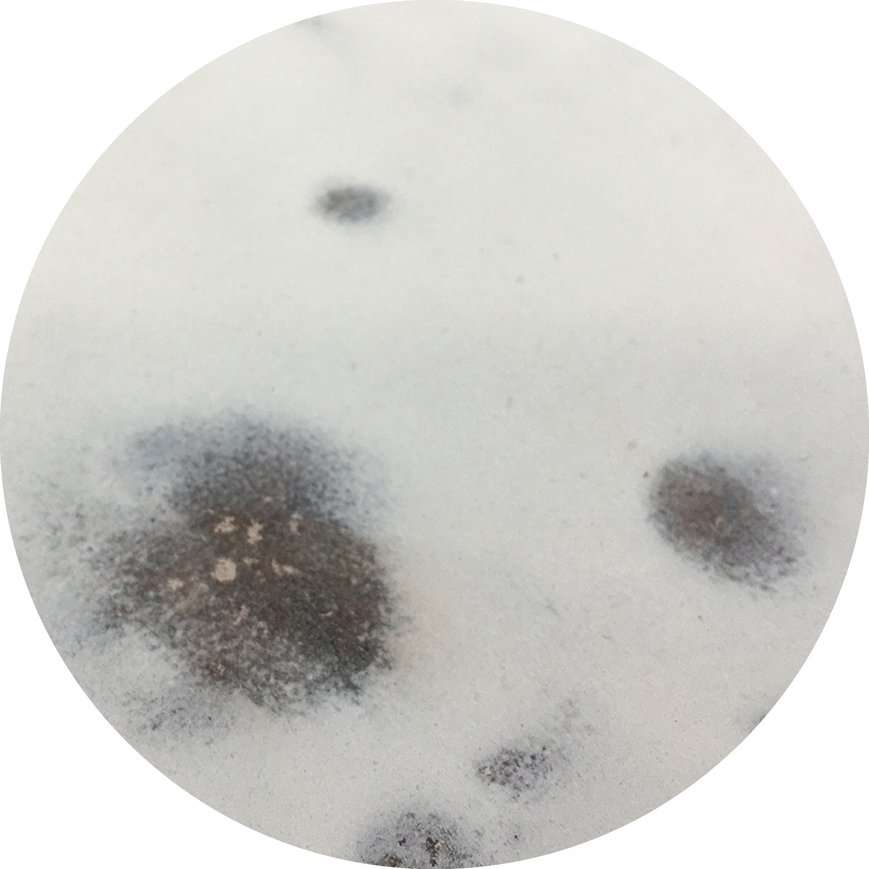 Although it is rare, the ink applied on the raw ceramic support can be sometimes too humid when the following watery applications are ready to be discharged (whether glaze, glue, or grit suspension).
