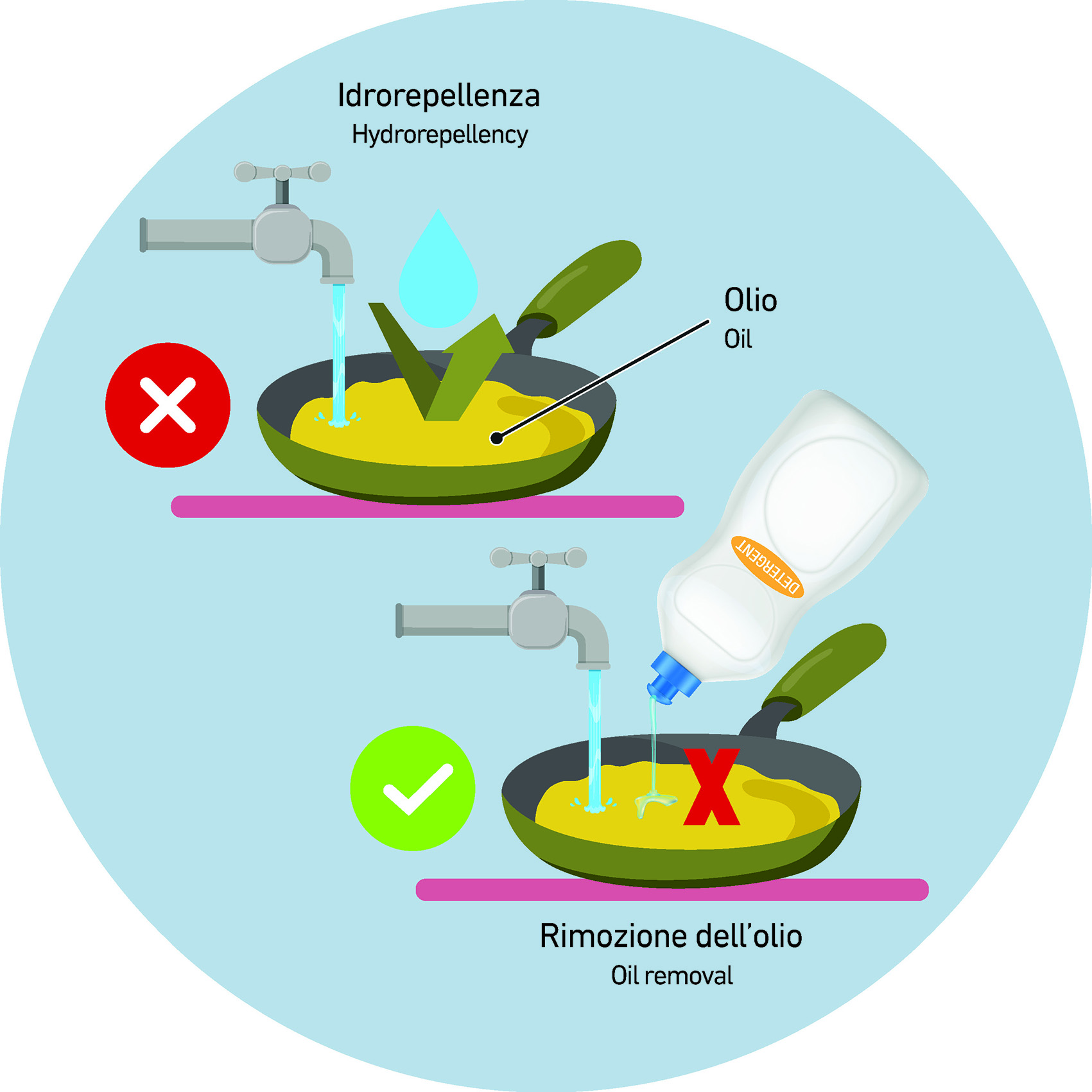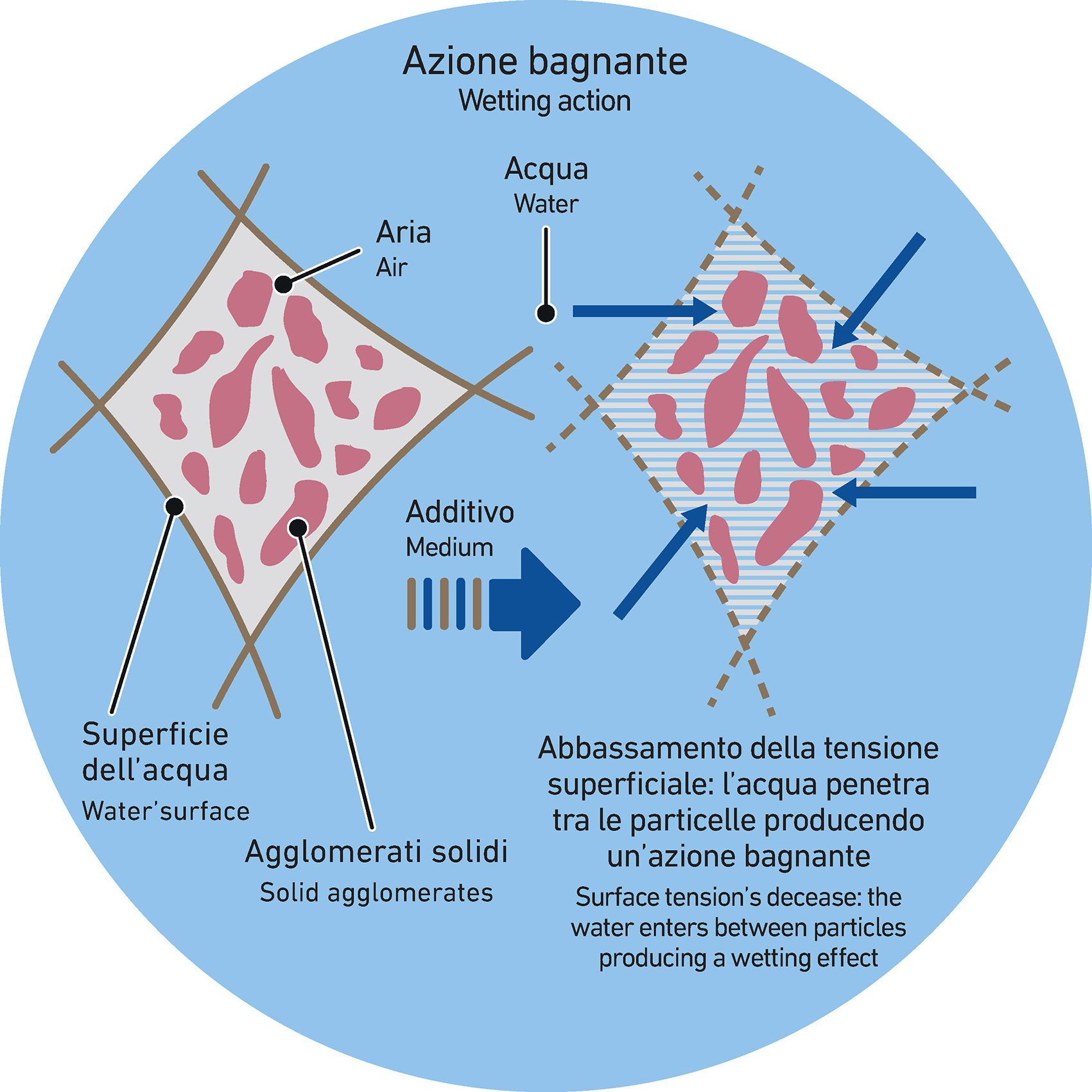 Going back to the previous example, the pouring of water on the oily plate, together with a small amount of detergent (chemical that lowers the surface tension), results in a good wettability of the surface and therefore in the cleanability of the plate.