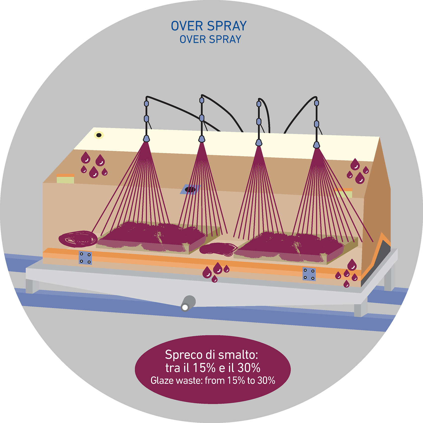 Ceramic glazes can be applied by means of several systems, but the airless spray application is surely the most common. This system is excellent and usually easier to manage, but it can be critical in terms of material waste and maintenance. How?