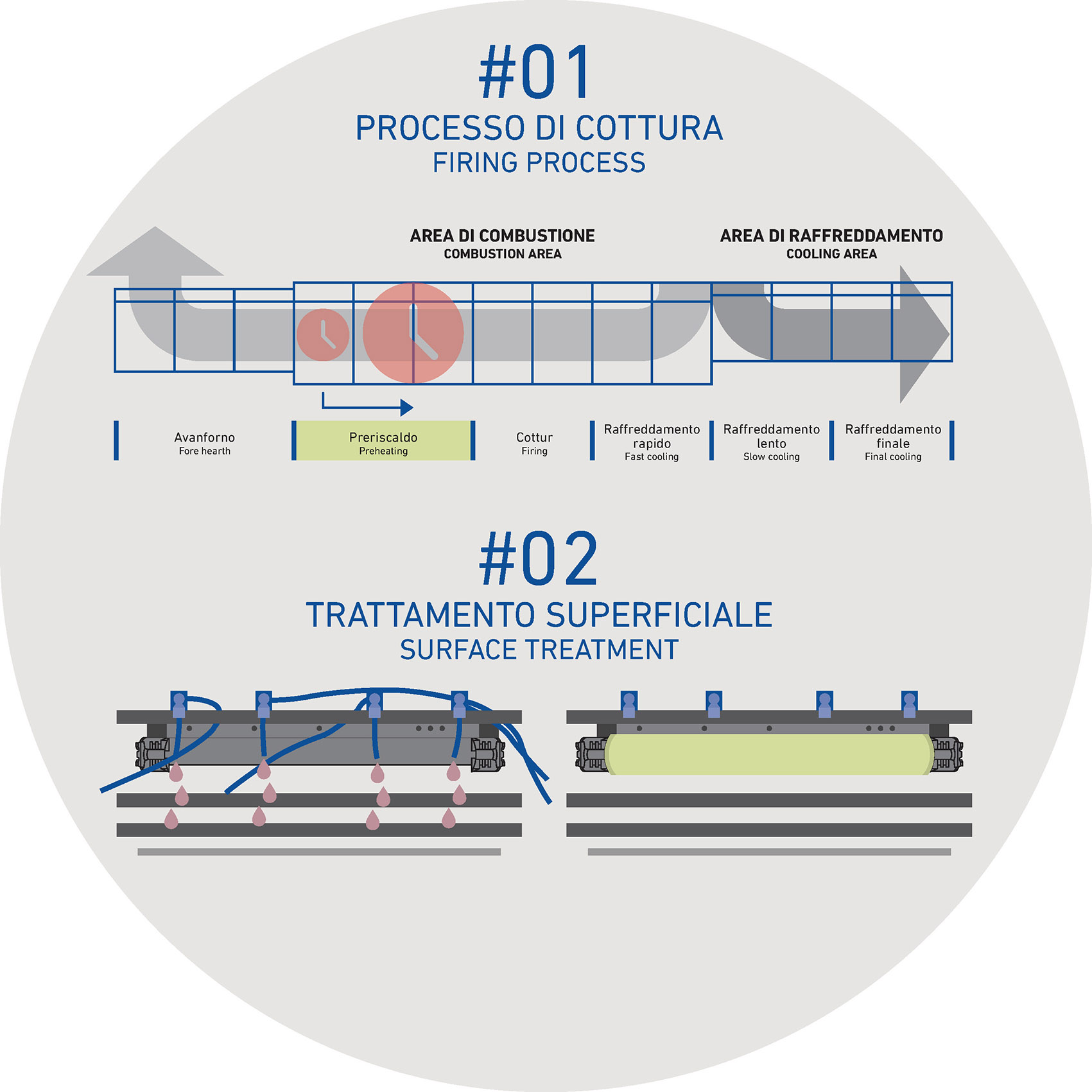 Polished and lapped ceramic tiles usually require specific protection treatments to clog the open pores that may emerge on the surface after the lapping/polishing process. A process, that is fundamental in avoiding or, at least, reducing possible chemical or dirty attacks.