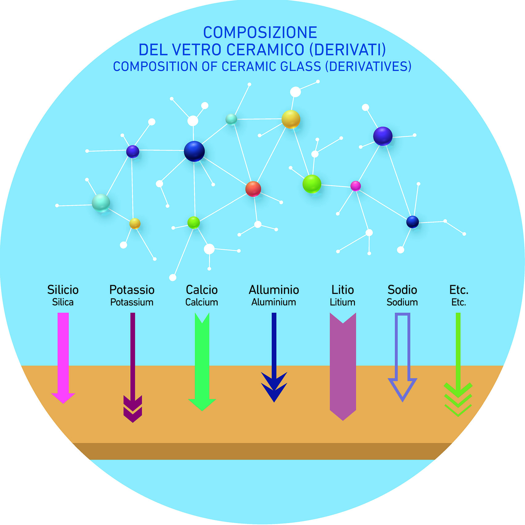 In general, the ceramic glass, regardless its chemical composition that can change depending on the glass, must be the most resistant as possible to chemical agents (acids and alkaline), to avoid solubilizations of those elements on the surface that, even if they are not potentially toxic, can be a problem in case of excessive or non-standard amounts.