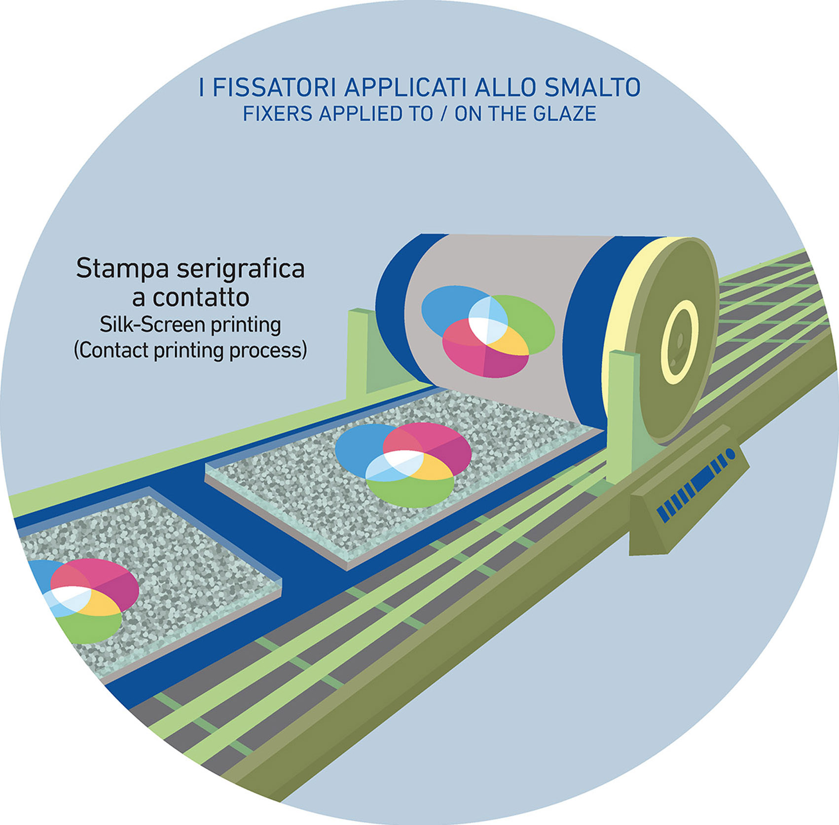 With the digital printing decoration technology that does not involve and physical contact between the machine and the raw ceramic tile, things have gradually changed, until the complete replacement of fixers and similar.
