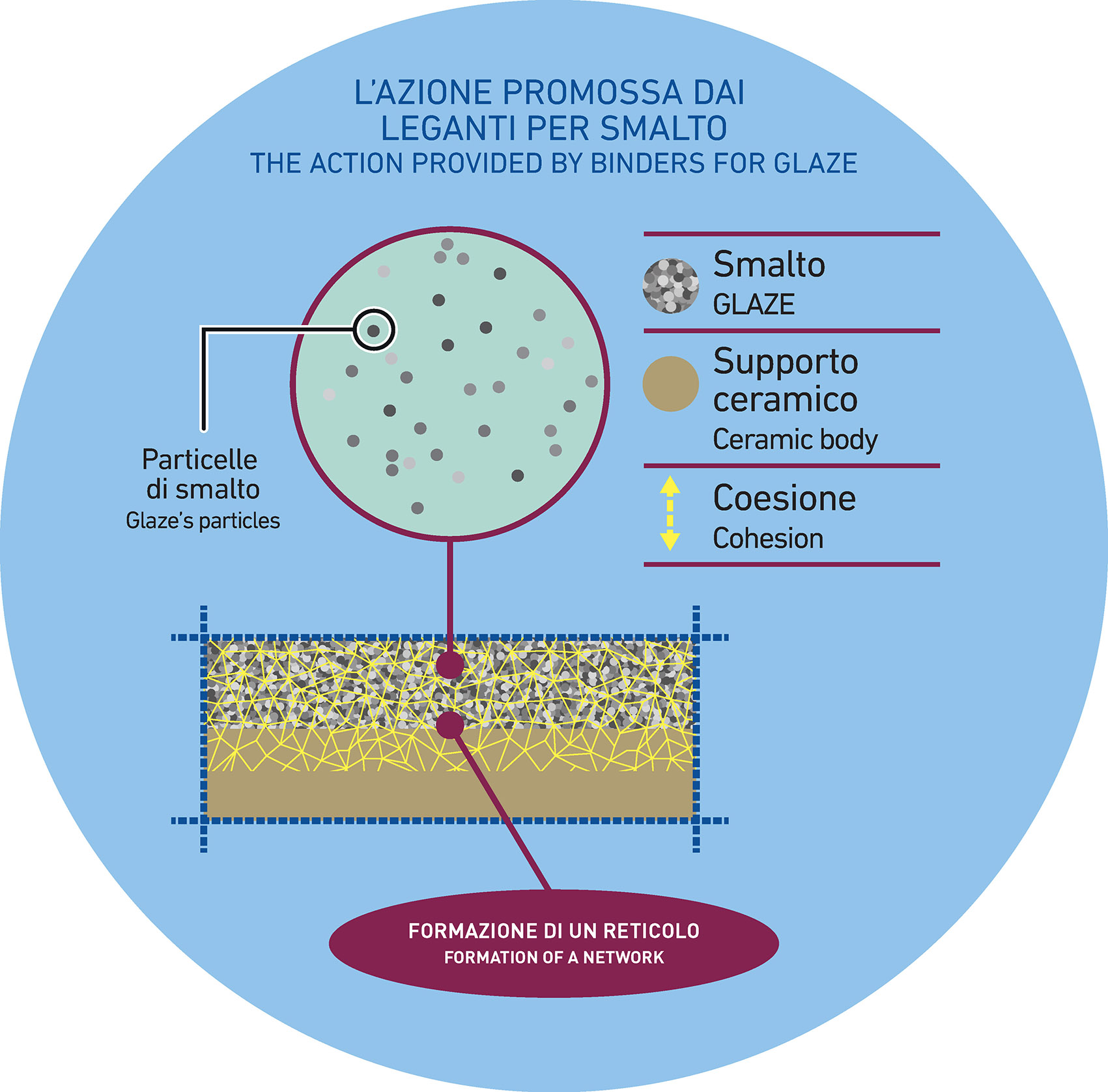 Unlike all other binders for glazes and engobes, polyvinyl alcohol – with the same active material – are marked by a strong cross-linking ability towards the particles, promoted by their chemism.