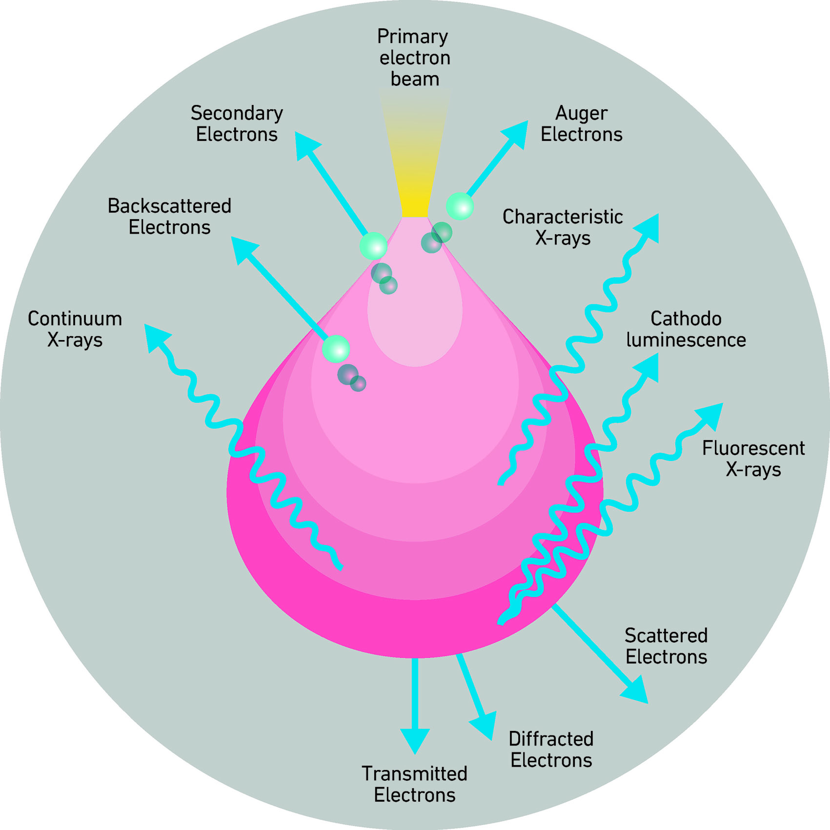 An electron beam is extracted from the source, collimated, and accelerated by the electromagnetic lens system of the electron microscope toward the surface under analysis. The accelerated electrons interact with the first extremely thin layer of the sample’s material, which in turn will emit other electrons. To simplify as much as possible, we can say that the electrons that emerge from the sample and provide the most relevant information are, first, the elastically reflected electrons from the incident beam, which maintain their energy unchanged (primary electrons), and secondly, the electrons ejected from the sample surface due to the inelastic interaction of the electron beam with the surface (secondary electrons). When secondary electrons are emitted from the sample, the latter will be in an excited, high-energy state.