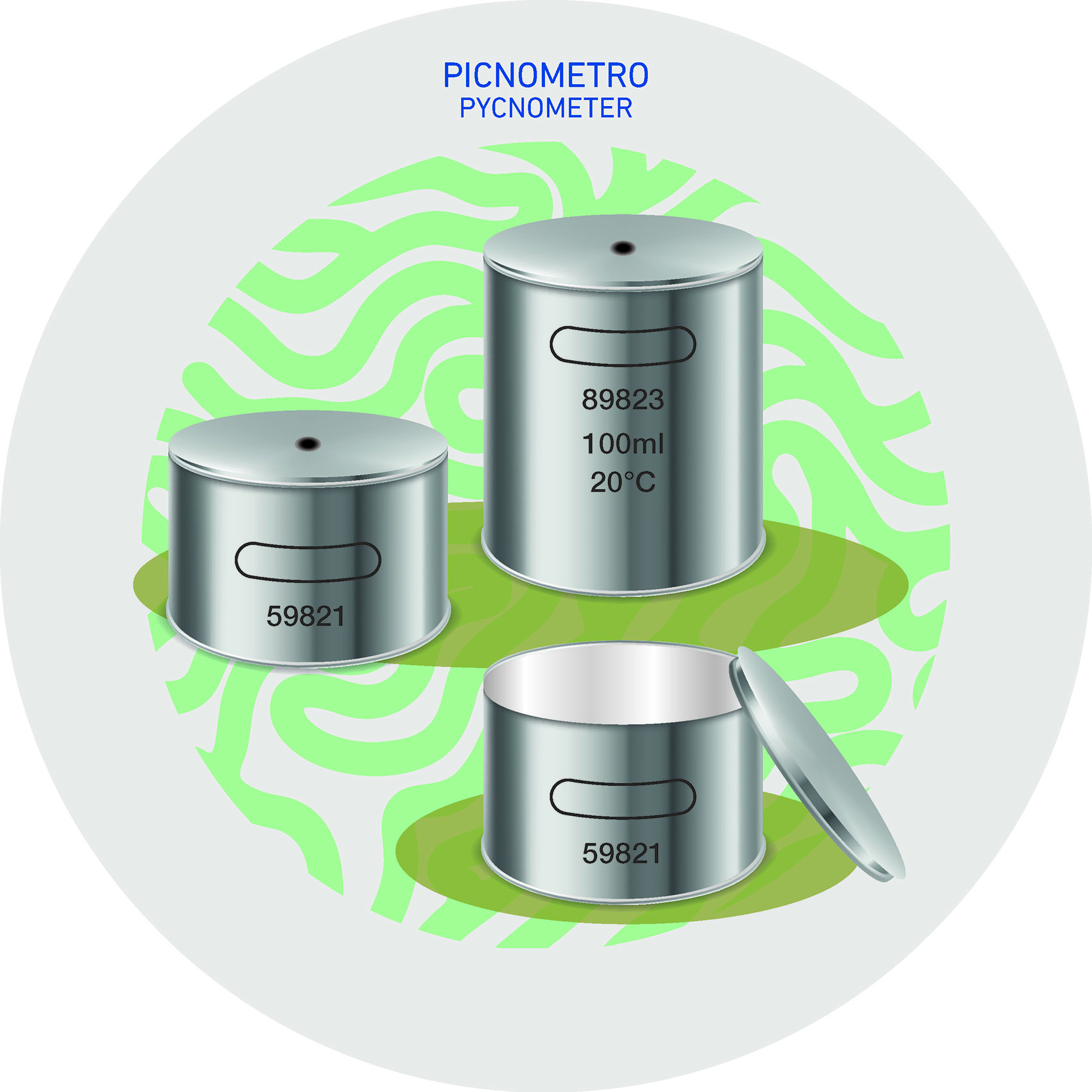 The pycnometer is a small metal cylinder with a known volume (approximately 100 cm³) that is filled with the suspension sample, whether frit, glaze, engobe, glaze-engobe, or slurry. It provides the mass-to-volume ratio, making density a key parameter to monitor in production.