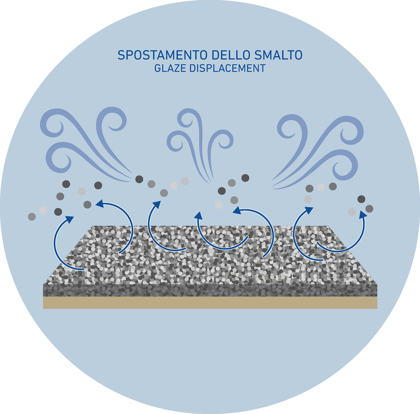 In general terms, when a glaze is said to be “dusting,” it typically refers to a glaze that, after being applied using traditional spray systems, exhibits a low level of cohesion. This lack of cohesion is evident not only among the glaze particles themselves—which fail to bind to one another—but also between the glaze and the surface of the still-unfired ceramic body.