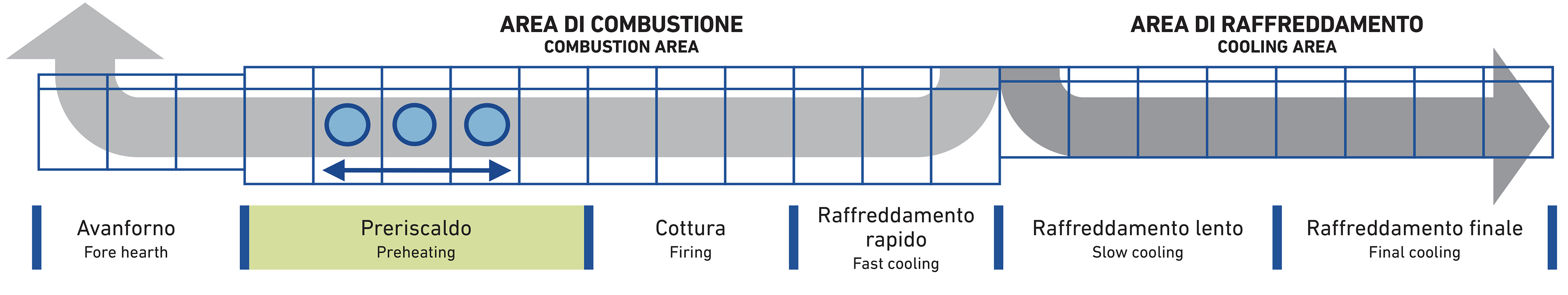 Il processo di evaporazione si sviluppa nella parte iniziale del forno e, nello specifico, nella fase di preriscaldo.