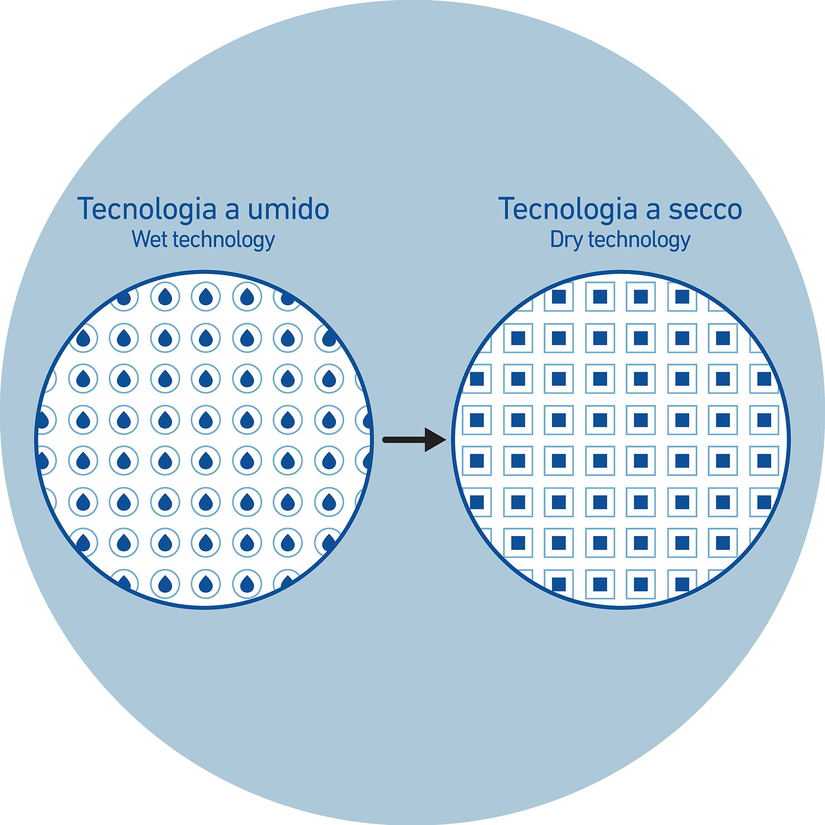 Un esempio per tutti è il passaggio da una tecnologia a umido, che implica evidentemente l’uso di abbondanti quantitativi d’acqua, a una tecnologia a secco, con il conseguente utilizzo di colla digitale e un’applicazione di graniglia mediante caduta.