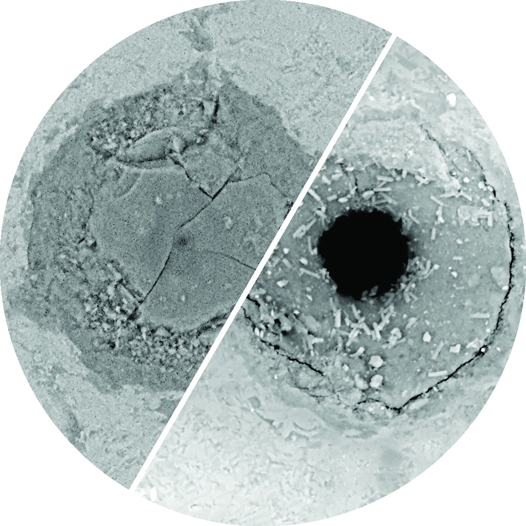 Lo stesso fenomeno accade all’interno dei pori: si assiste, in sostanza, alla formazione di piccole crepe che in qualche modo vanno parzialmente a compromettere l’azione protettiva del trattamento. Nei casi più estremi si può assistere ad un vero e proprio collasso della silice all’interno del poro.