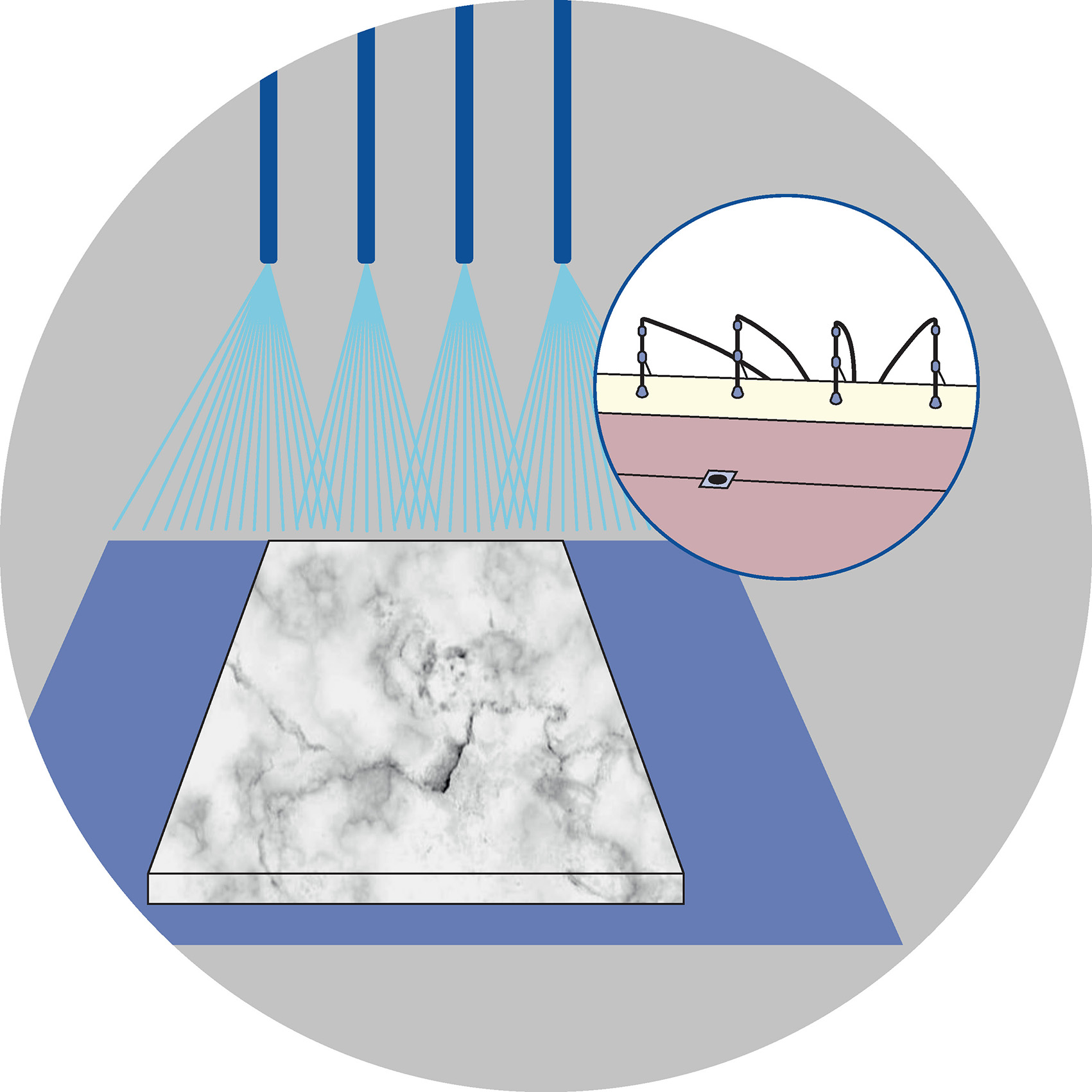 La graniglia, non entrando in contatto intimo con l’acqua (non lasciandosi cioè bagnare a causa della propria bassa bagnabilità), fa sì che la sospensione si comporti come un sistema eterogeneo dando origine a fenomeni in tutto simili al comportamento della sabbia all’interno di un bicchiere d’acqua. Tale comportamento può produrre, in fase applicativa, aggregati localizzati proprio in corrispondenza degli ugelli. In questi casi è opportuno, se non strettamente necessario, intervenire con l’aggiunta in soluzione di specifici additivi bagnanti. Azione che può essere messa in atto sia in fase di preparazione della sospensione che direttamente lungo la linea di smalteria durante l’applicazione.