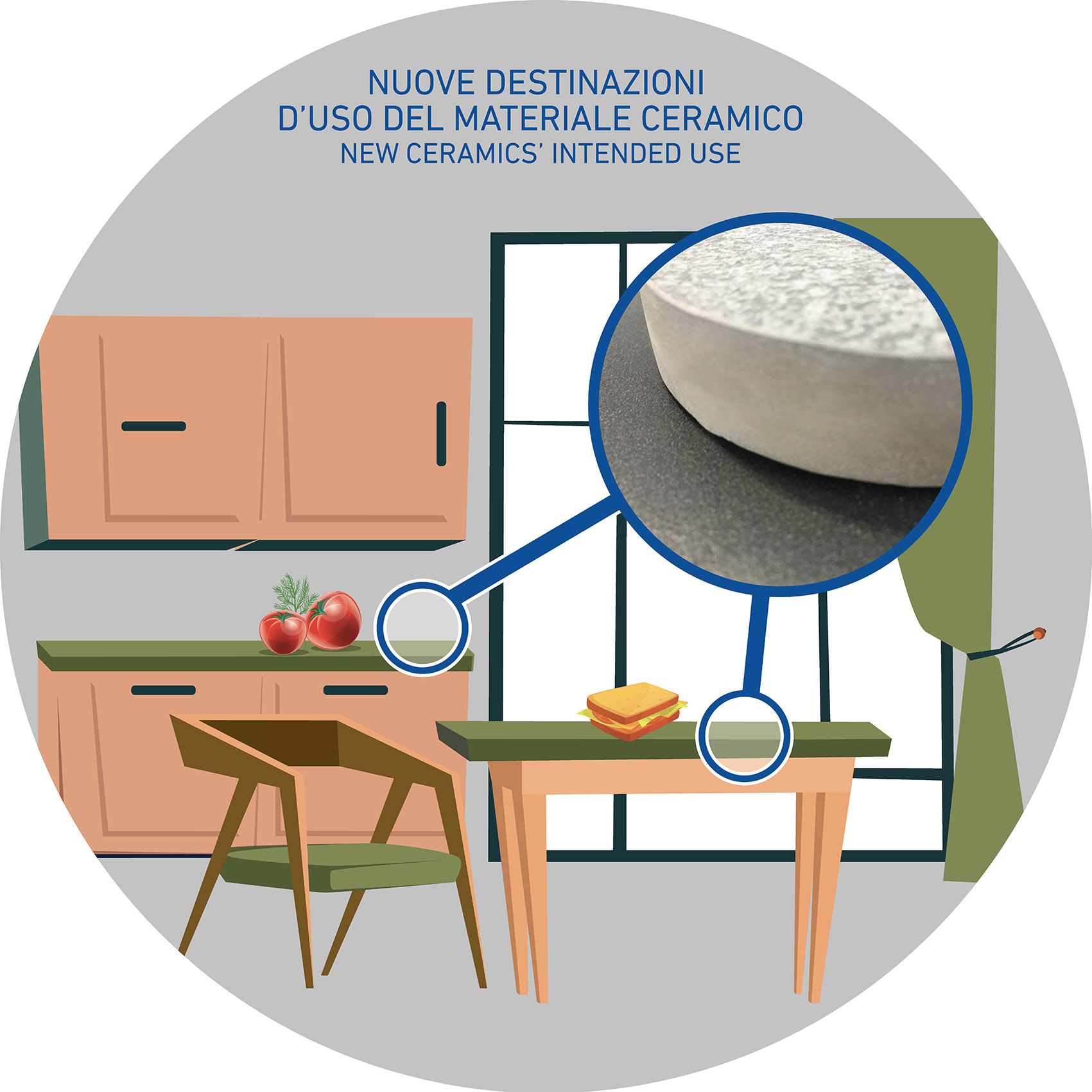L’aumento dei formati unitamente alle sorprendenti possibilità decorative promosse dalla tecnologia digitale (e in particolare dalla sbalorditiva riproduzione di materiali naturali come il marmo) hanno infatti aperto la ceramica a nuovi importanti ambiti applicativi. Primo fra tutti, quello dell’arredo: tavoli, piani di lavoro, counter-top e mobilio in genere.