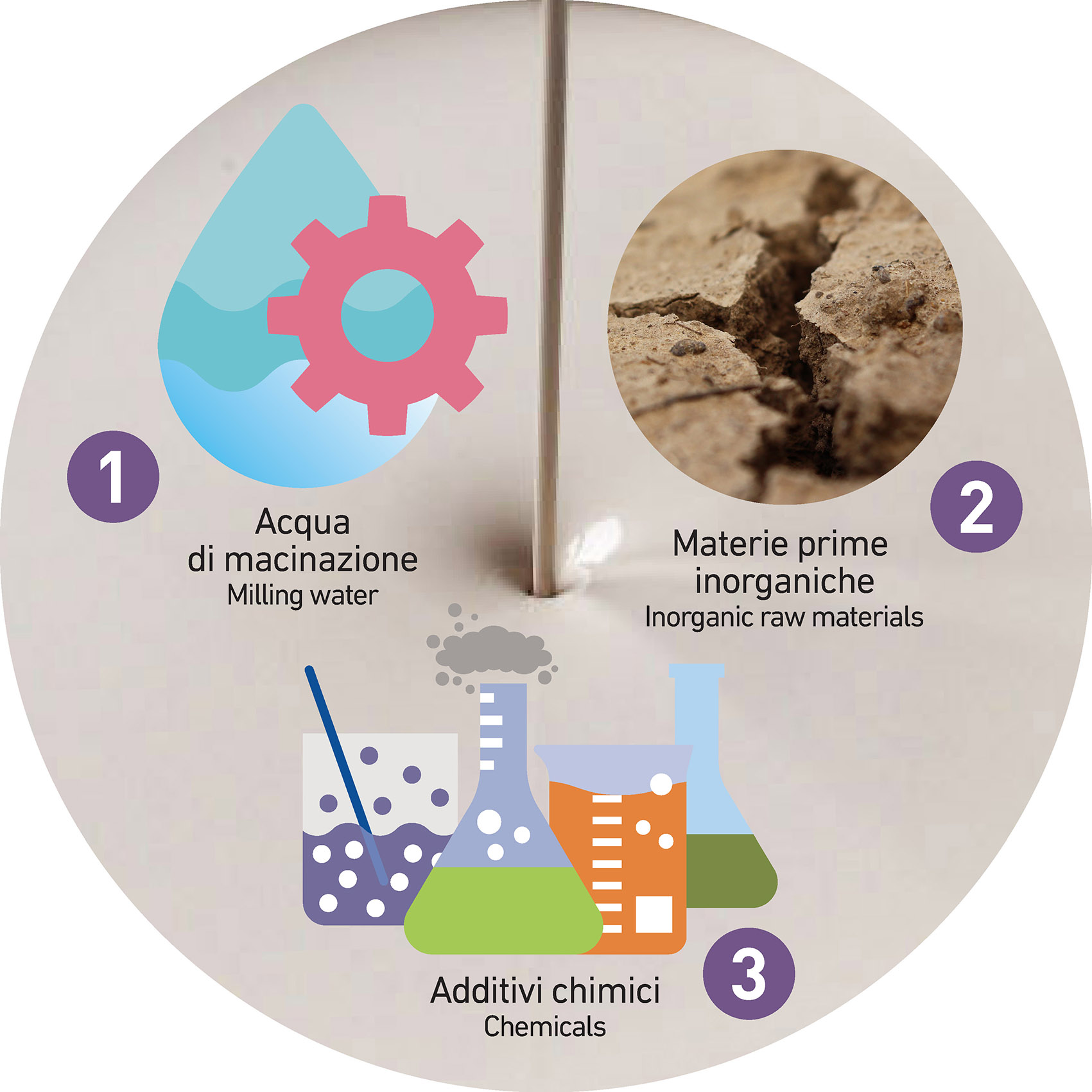 L’impasto ceramico, prima di essere sottoposto alla fase di formatura (durante la quale le polveri atomizzate che sono alla base del supporto ceramico crudo vengono pressate o compattate), subisce un processo di macinazione a umido mediante l’utilizzo di acque di macinazione (acque di recupero e di falda). Durante detta fase l’acqua di macinazione e le materie prime inorganiche così miscelate, formano la slurry, anche detta barbottina.
