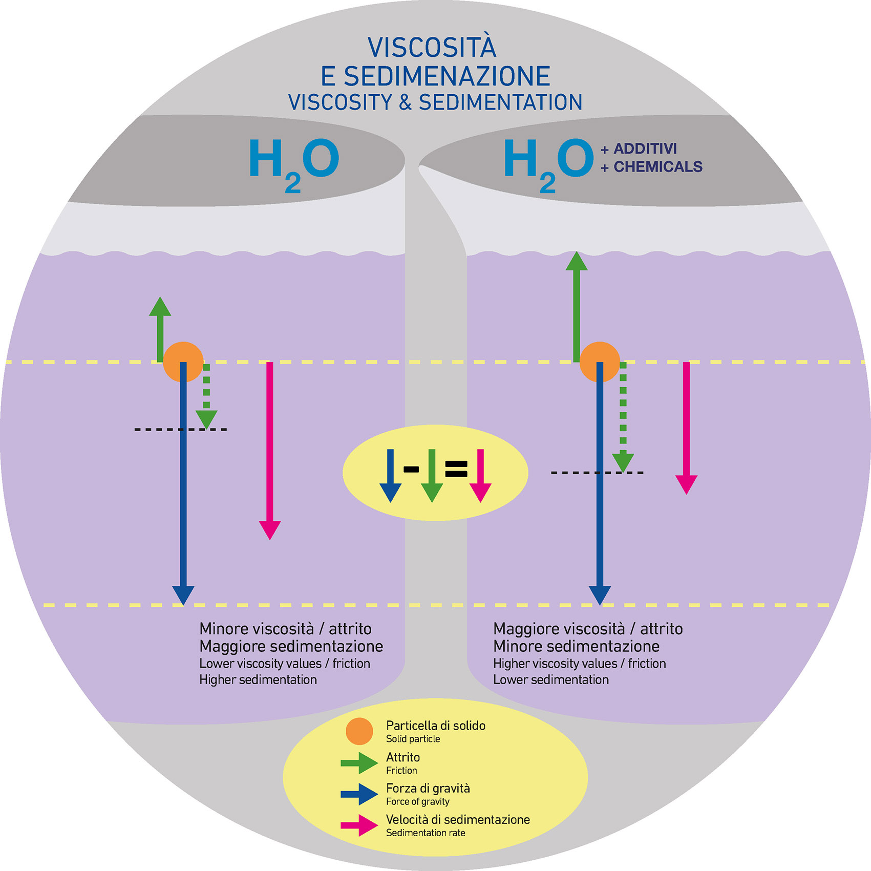 In primo luogo, l’aspetto più lampante riguarda con tutta evidenza le molteplici e sempre diverse proprietà sospensivanti degli additivi chiamati in causa dalle masse/granulometrie in campo.