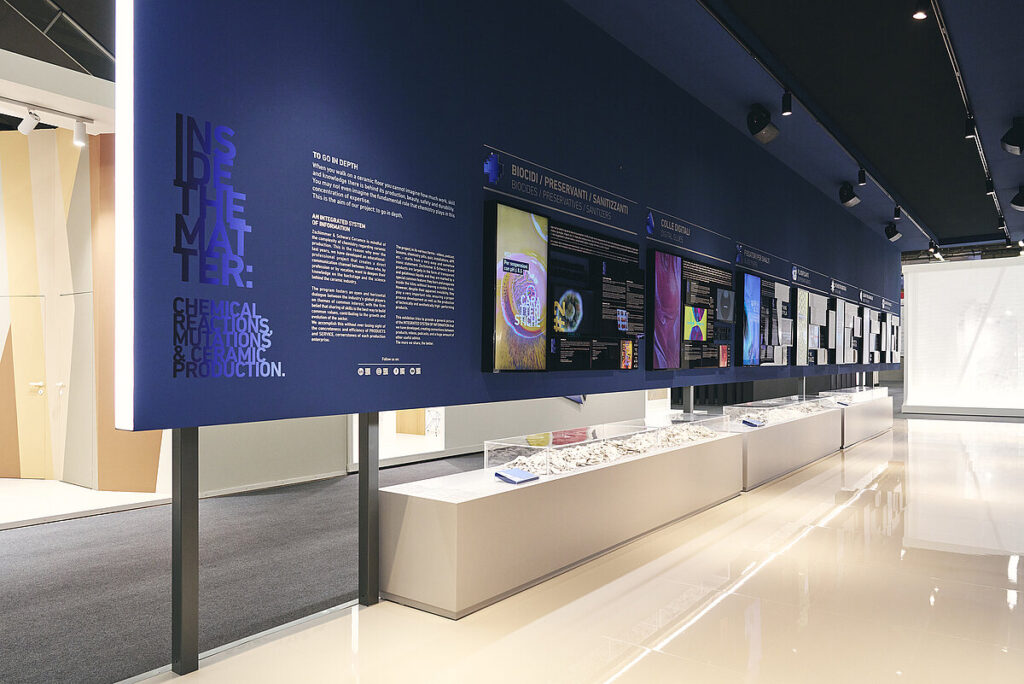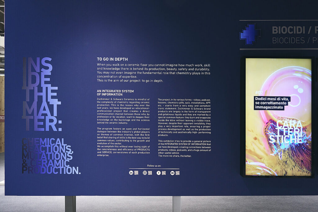 L’esposizione proposta alla 41a edizione della fiera Cersaie desidera fornire un quadro generale del sistema integrato di informazione che è stato sviluppato nel tempo, creando connessioni tra prodotti, video, podcast e una vasta gamma di altri consigli utili.