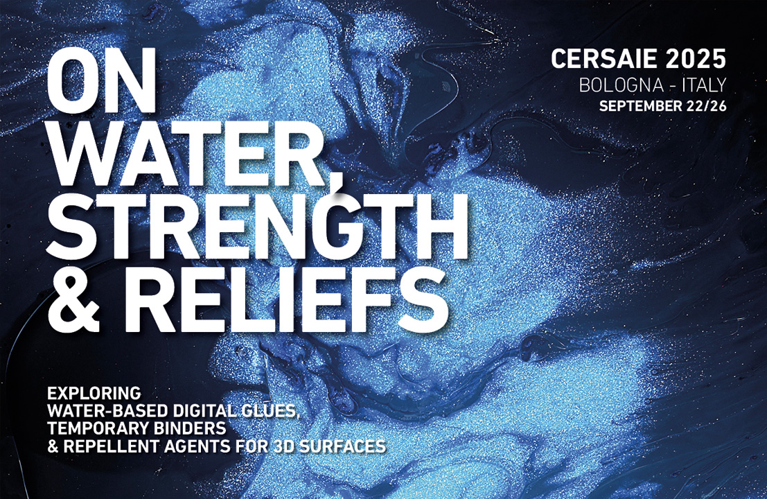 In questa direzione, Zschimmer & Schwarz Ceramco esplora il potenziale delle superfici non planari attraverso due categorie di prodotti a base acqua: le colle digitali della serie AQUABOND, utilizzate in combinazione con graniglie vetrose, e gli agenti riservanti della gamma AQUASINK, capaci di generare rilievi e avvallamenti mirati grazie a un’azione selettiva.